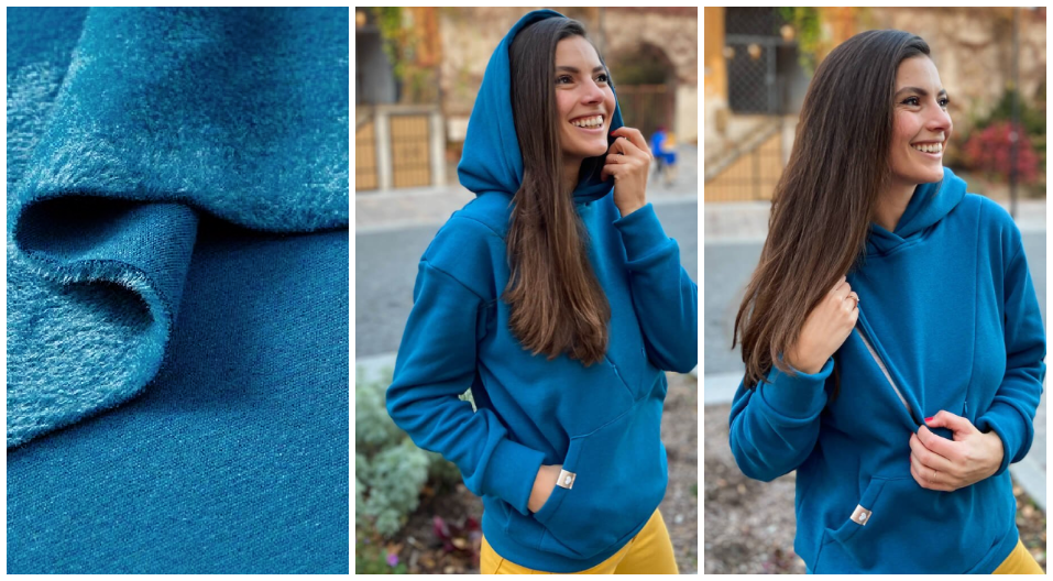 - mikina je vhodná aj pre nosiace mamičky, kedy aj pri dojčení ostane mamičkina hruď v teple