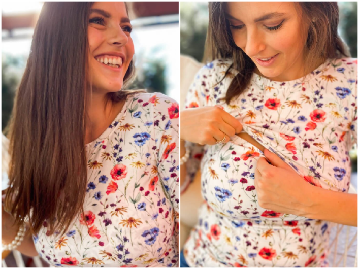 Naše tričká vyrábame z kvalitného a priedušného úpletu. Tričká so zložením 95% bavlny a 5% elastanu sa dokonale prispôsobia telu. Už si nemusíte vyberať či chcete počas bežného dňa na materskej vyzerať dobre alebo byť v pohode, cítiť sa príjemne a dojčiť kedykoľvek na požiadanie. Elastické tričká s prestrihom pod prsiami poskytujú prístup k prsiam, ktorý zvládnete odhrnúť aj jednou rukou. Toto sú naše TOP kúsky na dojčenie, v ktorých sa budeš cítiť výnimočne každý jeden deň.
