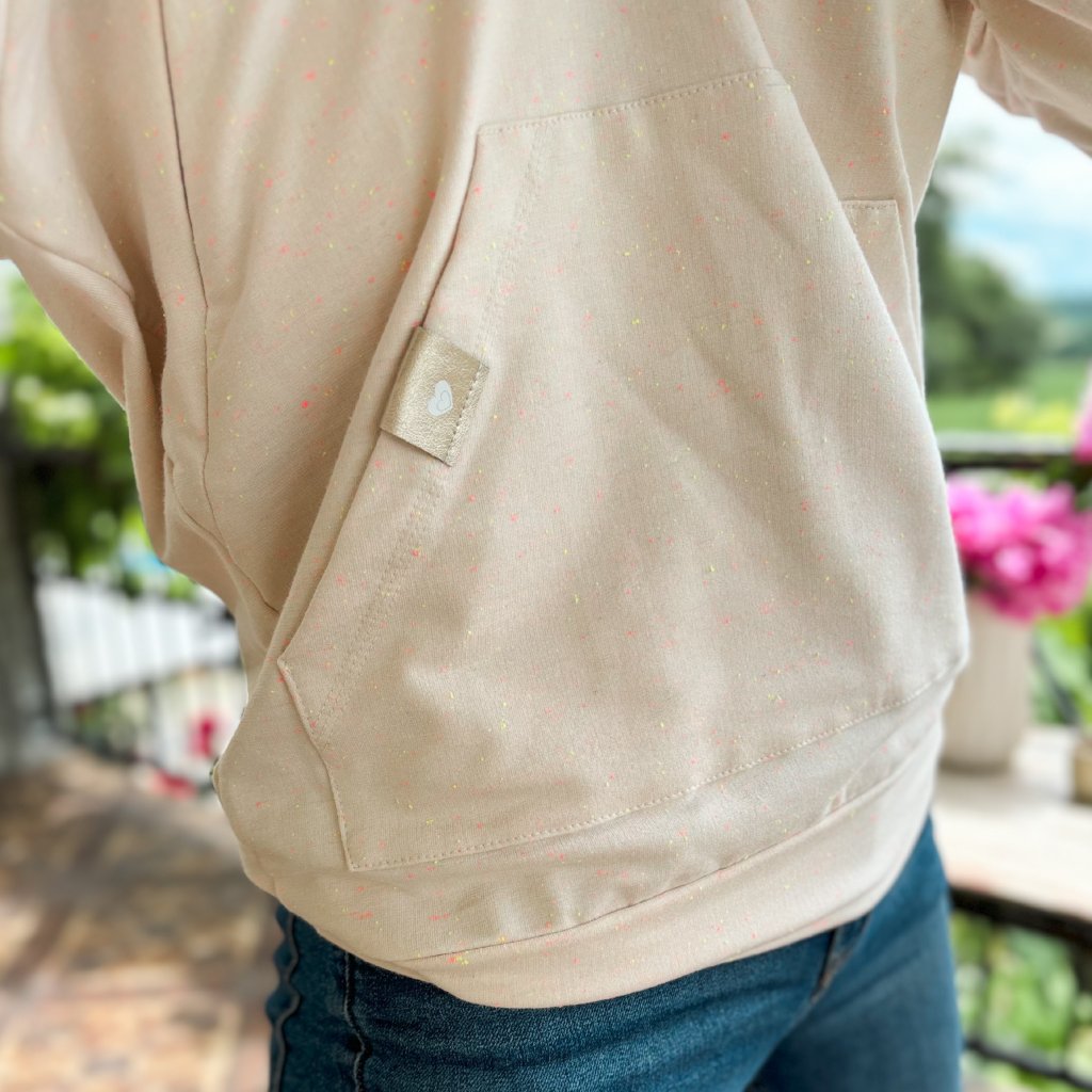 Mikina na dojčenie z príjemnej tenkej/ nepočesanej teplákoviny. Mikina je skvelou voľbou pre celoročné nosenie. Vďaka 2 skrytým zipsom bude dojčenie ešte jednoduchšie a pohodlnejšie. Materiál je dostatočne pružný a tak sa do nej zmestí aj tehotenské bruško. Mikina je vhodná aj pre nosiace mamičky, kedy aj pri dojčení ostane mamičkina hruď v teple. Mikina má klokanie vrecko a veľkú kapucňu. Je doladená elegantnými koženými značkami s logom Mamiky. Decentné logo srdiečka nájdete na vrecku a na kapucni mikiny.