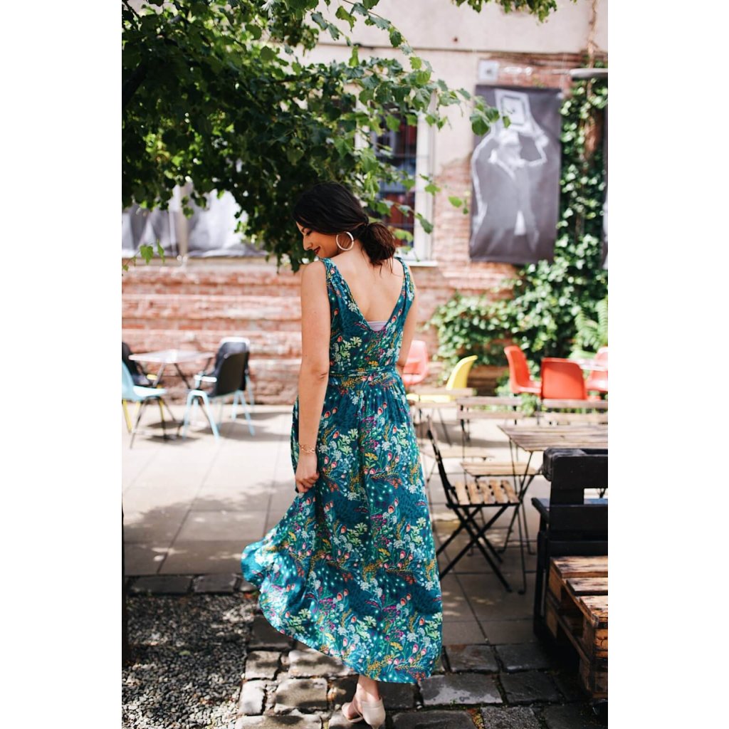 Na dotyk hodvábne šaty sú ušité z jemnej viskózy, ktorou sme nešetrili. Vďaka tomu majú bohatú sukňu ktorá je v zadnej časti o niečo dlhšia ako v prednej. Takýto strih sa hodí vysokým, ako aj nižším mamičkám. Šaty sa dajú pohodlne nosiť aj s tehotenským bruškom.