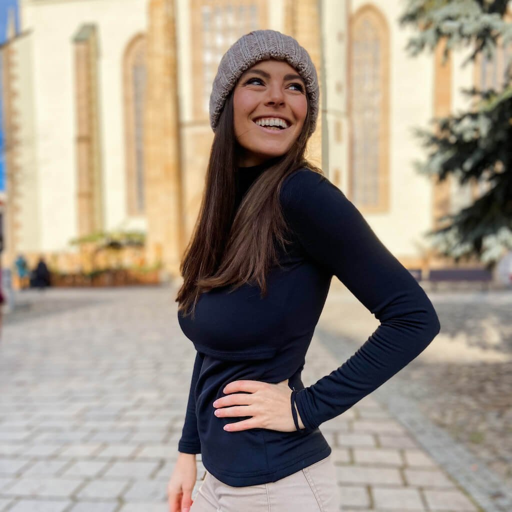 - Dojčiaca verzia: Tento rolák je k dispozícii aj v dojčiacej verzii s diskrétnym prestrihom pod prsiami, ktorý uľahčí dojčenie kedykoľvek a kdekoľvek, bez zbytočného vyzliekania.