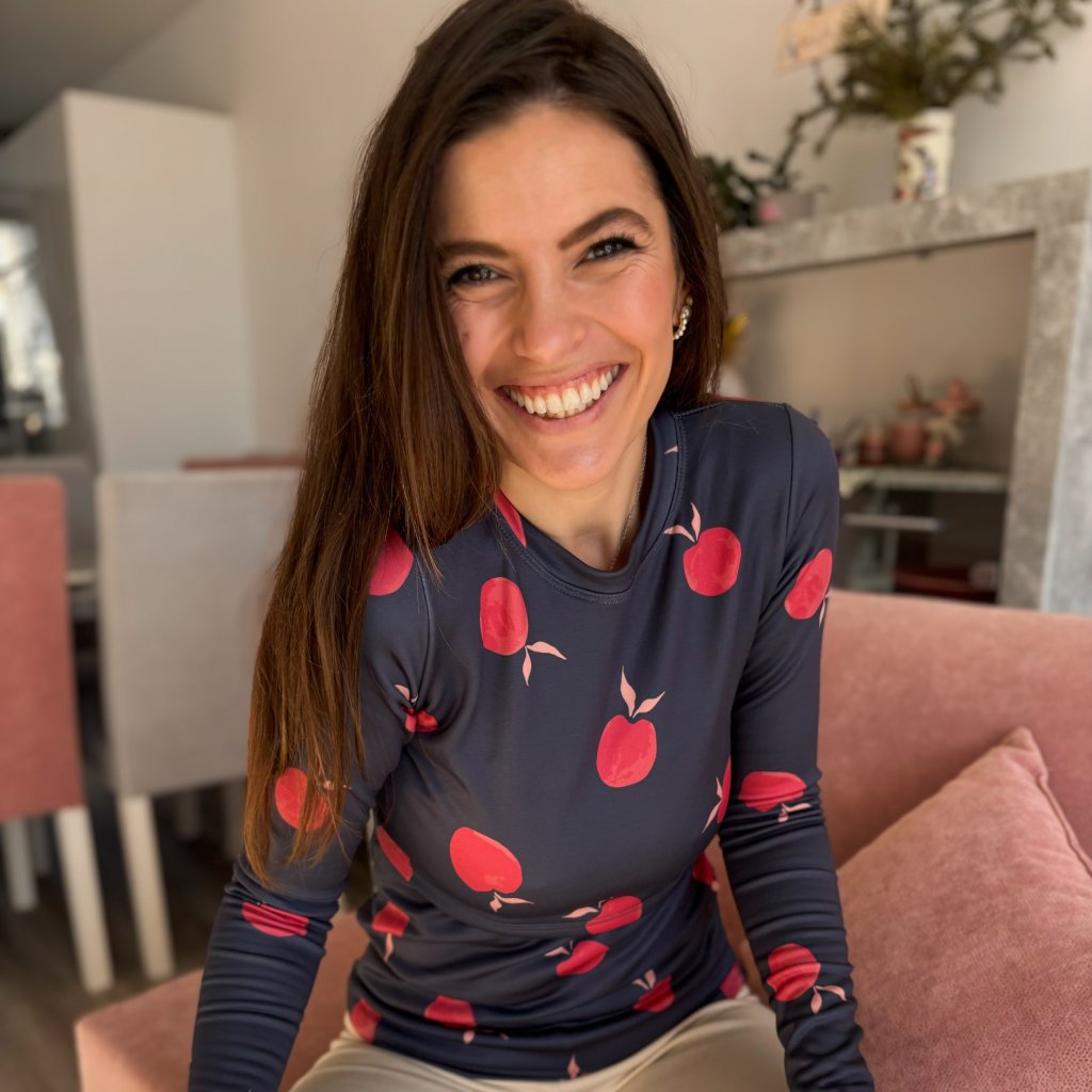 Tento kúsok šijeme v dojčiacej, alebo nedojčiacej verzii s rolákom, alebo bez. Dojčiaca verzia má nenápadný prestrih pod prsiami. Do spodnej časti kojo časti sme vložili jemnú tenučkú gumičku, aby lepšie držala svoj tvar.