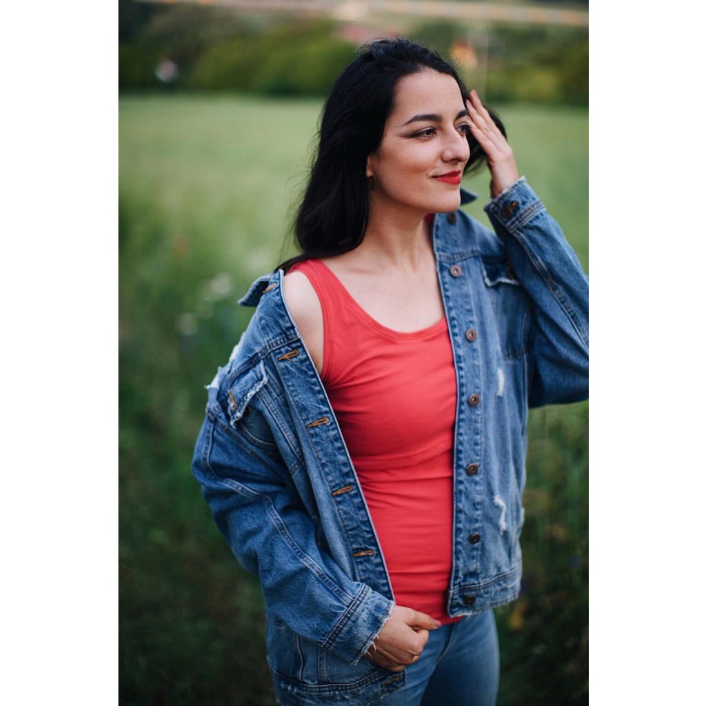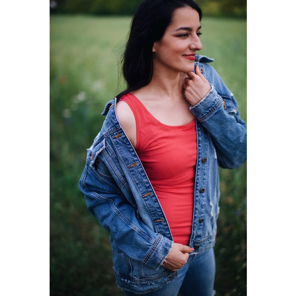 Jednofarebné tielko na dojčenie, v ktorom pohodlne a diskrétne nadojčíte Vaše bábätko. Dojčenie je praktické vďaka prispôsobenému prestrihu pod prsiami.