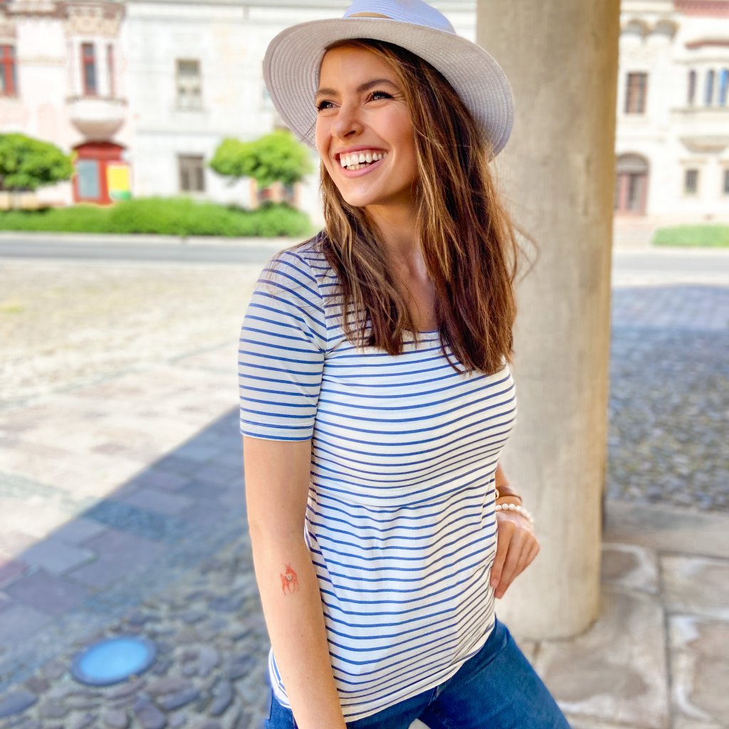Štýlové tričko na dojčenie v ktorom pohodlne a diskrétne nadojčíte Vaše bábätko. Hodí sa k sukni, rifliam. Vhodné na svadbu, krstiny, oslavu alebo len tak :)