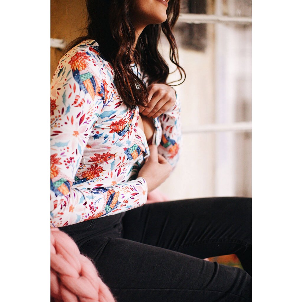 Štýlové tričko na dojčenie s dlhým rukávom v ktorom pohodlne a diskrétne nadojčíte Vaše bábätko. Hodí sa k sukni, rifliam. Kvalitný, priedušný úplet sa dokonale prispôsobí telu.